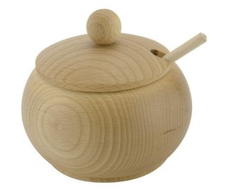 Ez a fa cukortartó fedővel teljes egészében bükkfából készült. Átmérője 12 cm, és tartozik hozzá egy fedő gombbal és egy fa kanál. Ez az esztétikus cukortartó elengedhetetlen az asztalodon, amikor egy csésze aromás teával vagy kávéval kínálod szeretteidet. A cukortartók széles választéka különböző anyagokból és méretekben megtalálható a azhome.ro weboldalunkon.