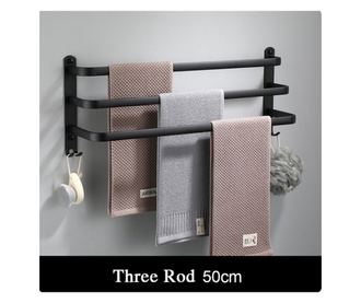Blackswan Fürdőszobai Törölközőtartó, M13 típus, hármas, matt fekete, akasztókkal, 50 cm