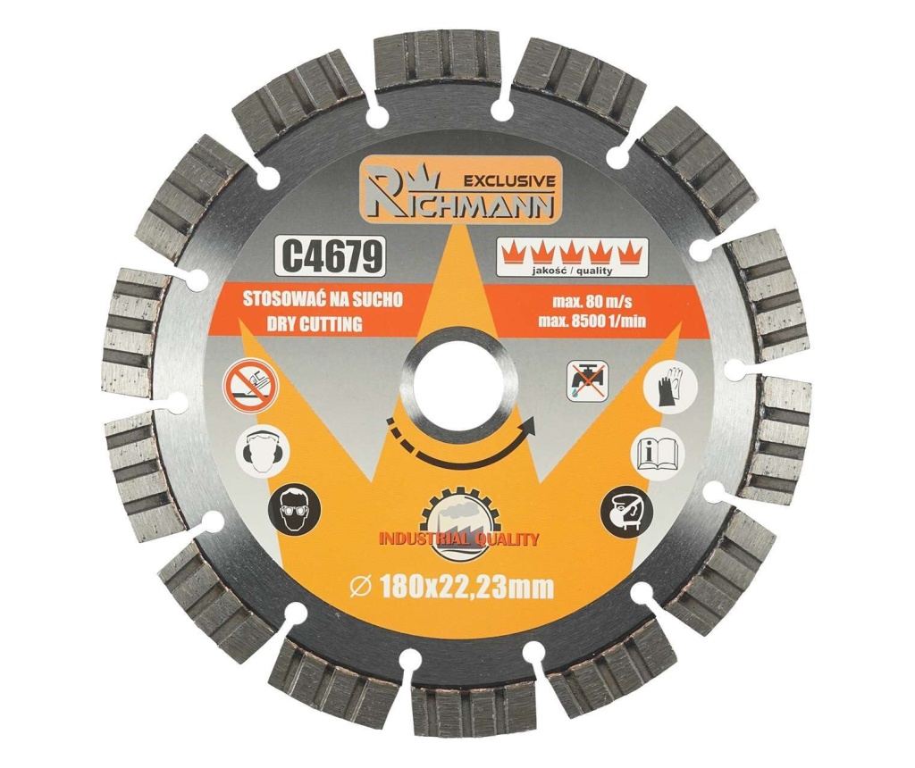 Szegmentált gyémánt vágótárcsa, betonhoz, száraz vágás, 180 mm/22,23 mm, Richmann Exclusive