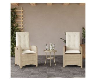 2 db bézs polyrattan dönthető kerti szék párnákkal