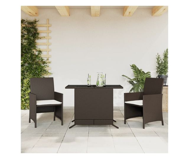 3 részes barna polyrattan bisztrógarnitúra párnákkal