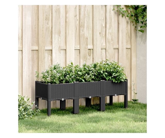 fekete PP rácsos kerti ültetőláda 120 x 40 x 42 cm