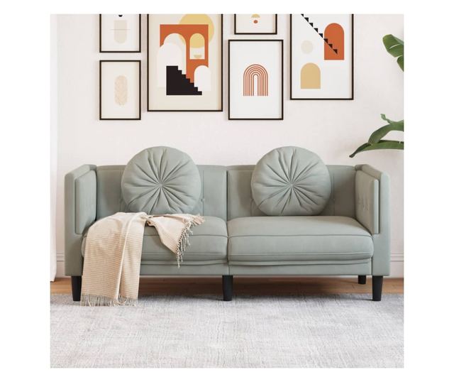 - Kényelmes ülőélmény: A kanapé rendkívül kényelmes a vastagon párnázott ülésével, a karfával, a háttámlával, és a hozzátartozó kerek párnákkal.