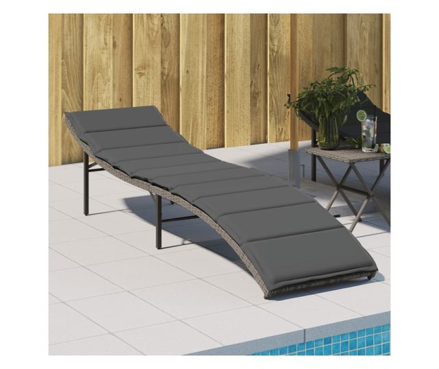 szürke polyrattan napozóágy párnával 55x199x50 cm