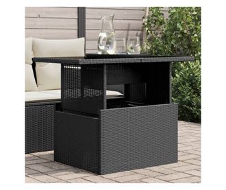 fekete polyrattan üveglapos kerti asztal 100 x 55 x 73 cm