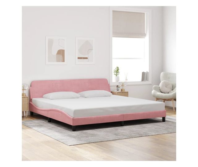 rózsaszín bársony ágykeret fejtámlával 200 x 200 cm