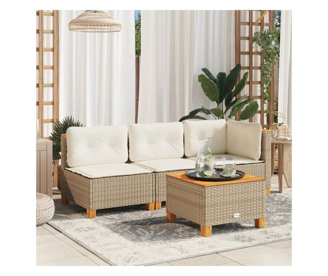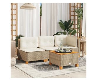 bézs polyrattan karfa nélküli kerti kanapé párnával