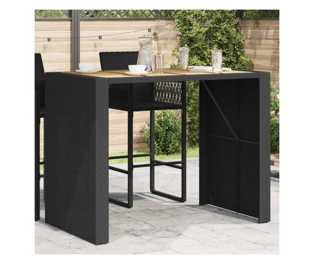 fekete polyrattan kerti bárasztal akácfa lappal 145x80x110 cm
