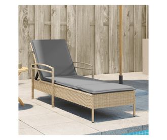 bézs polyrattan napozóágy párnával 63x200x81 cm