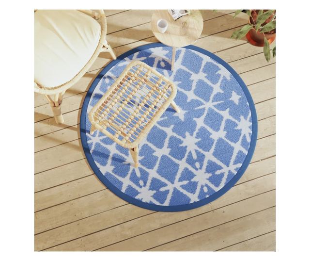 kék és fehér polipropilén kültéri szőnyeg Ø120 cm