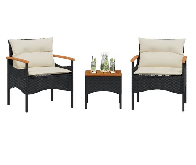 3 részes fekete polyrattan kerti ülőgarnitúra párnával