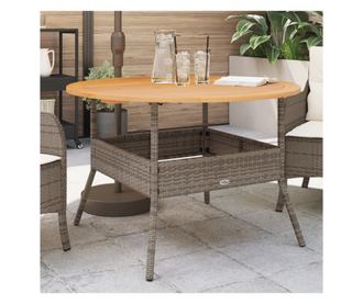 szürke polyrattan kerti asztal akácfa lappal Ø110 x 71 cm
