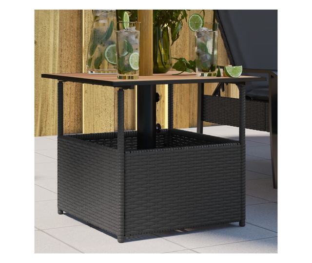 fekete polyrattan kerti asztal napernyőlyukkal 55x55x46,5 cm