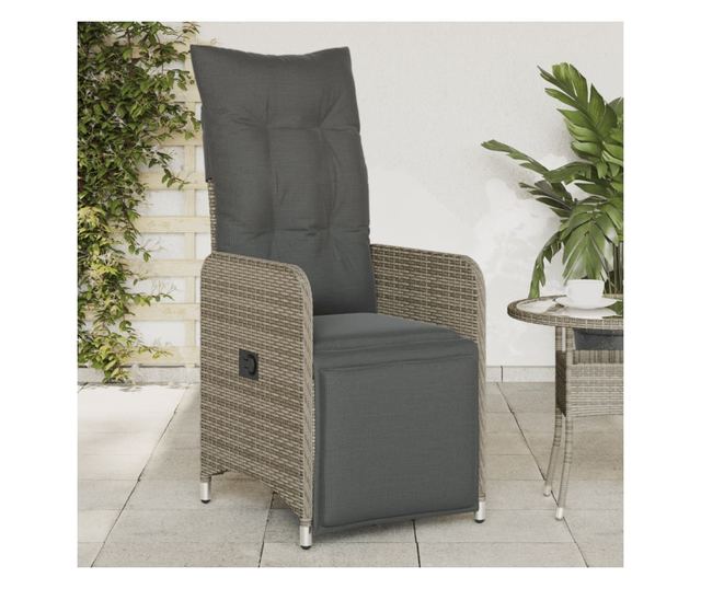 szürke polyrattan dönthető kerti szék párnákkal