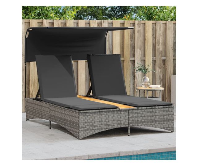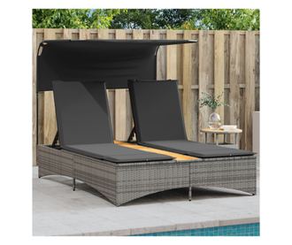 szürke polyrattan dupla napozóágy tetővel és párnával