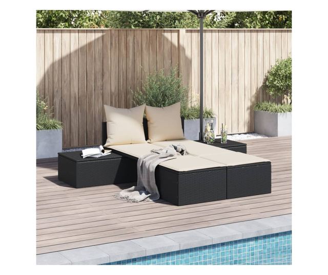 fekete polyrattan dupla napozóágy párnával