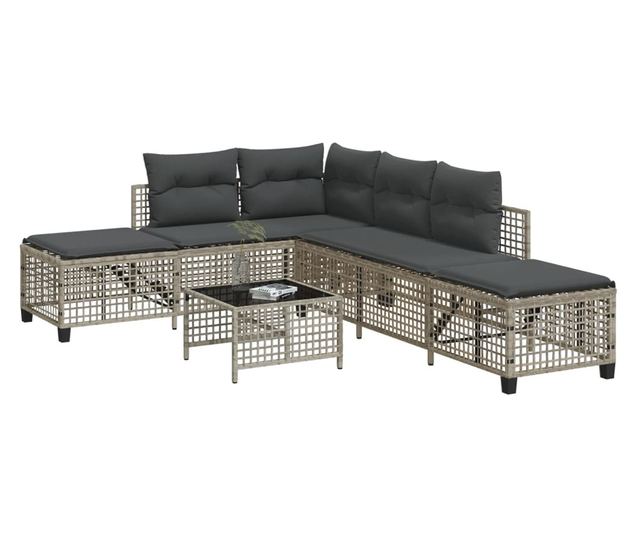 3 részes szürke polyrattan kerti sarokkanapészett párnákkal
