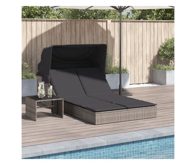 szürke polyrattan dupla napozóágy tetővel és párnával