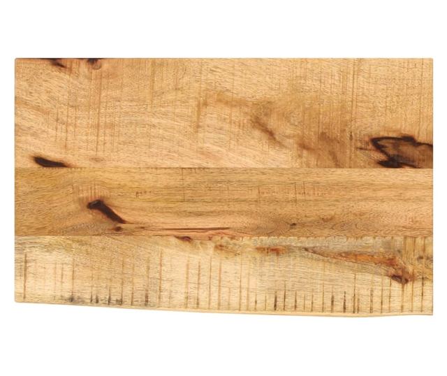 - Természetes él: A fa bútorlap rusztikus természetes éllel rendelkezik. A csomók, repedések, enyhén ívelt formák és színárnyalatok mind a mangófa részét képezik, így minden asztallap egyedi karakterű.