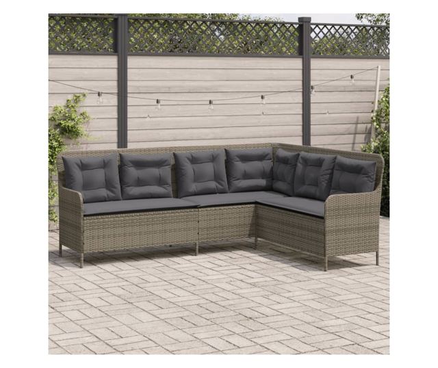 szürke polyrattan L-alakú kerti kanapé párnákkal