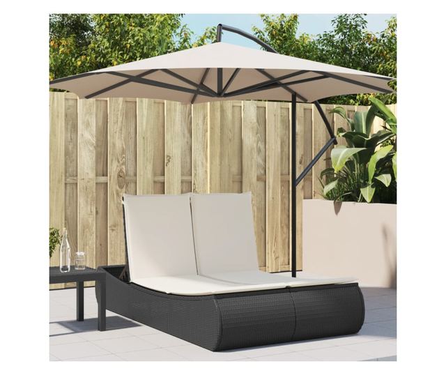 fekete polyrattan dupla napozóágy párnával
