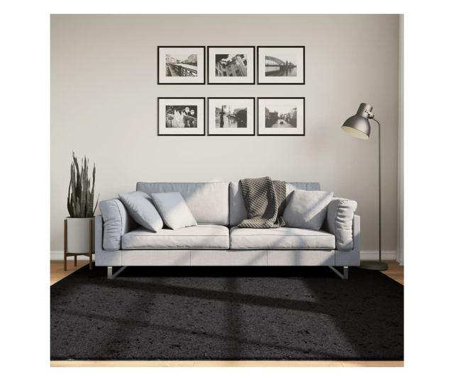 PAMPLONA fekete magas szálú bolyhos modern szőnyeg 200 x 200 cm