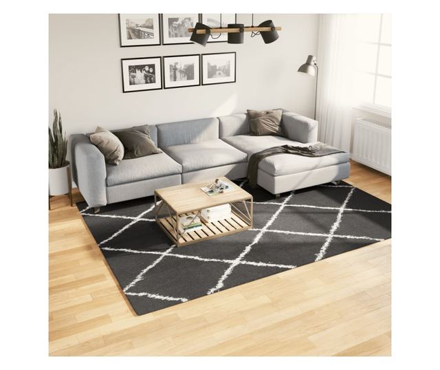 PAMPLONA fekete és krém bolyhos modern szőnyeg 200 x 280 cm
