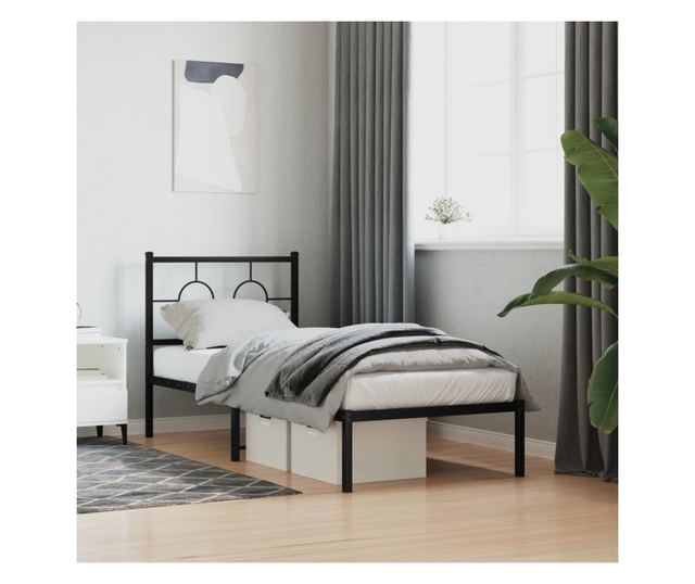 fekete fém ágykeret fejtámlával 80 x 200 cm