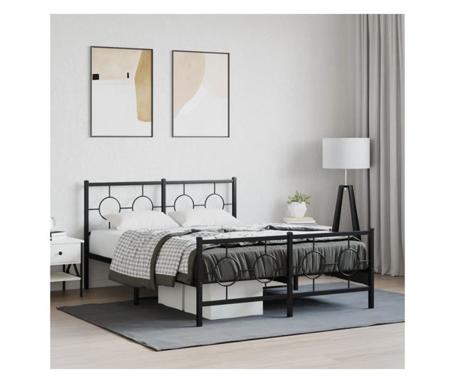 fekete fém ágykeret fej- és lábtámlával 135 x 190 cm