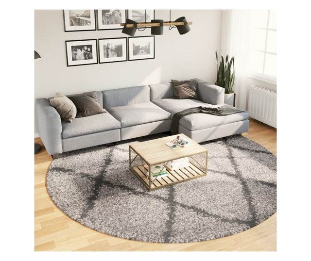 PAMPLONA bézs és antracit bolyhos modern szőnyeg Ø 280 cm