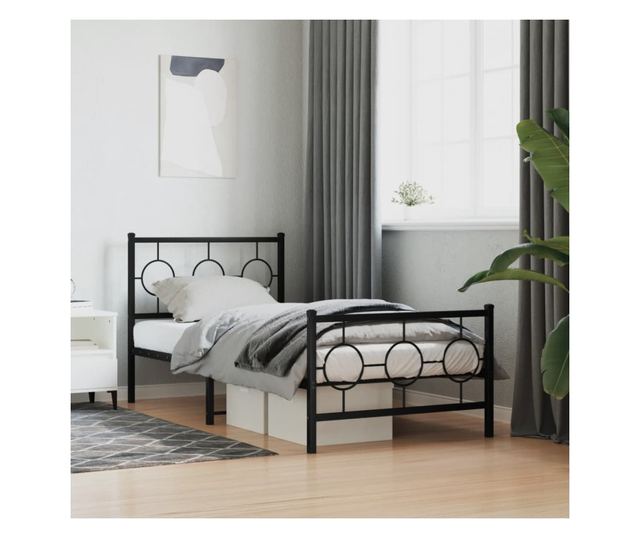 fekete fém ágykeret fej- és lábtámlával 90 x 190 cm
