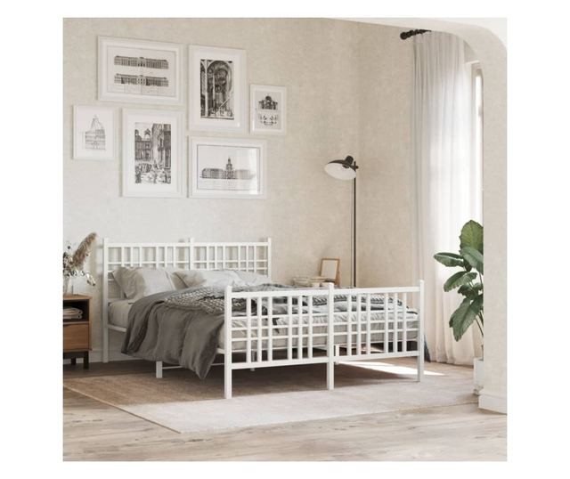 fehér fém ágykeret fej- és lábtámlával 140x200 cm