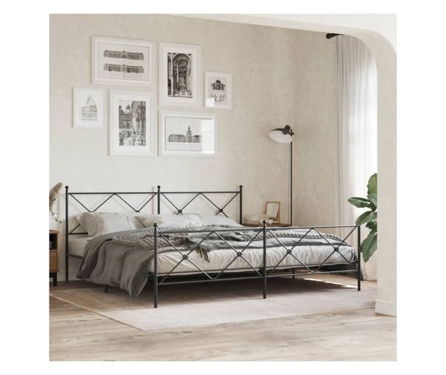 fekete fém ágykeret fej- és lábtámlával 193 x 203 cm