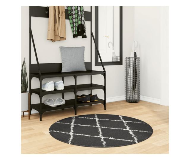 PAMPLONA fekete és krém bolyhos modern szőnyeg Ø 100 cm
