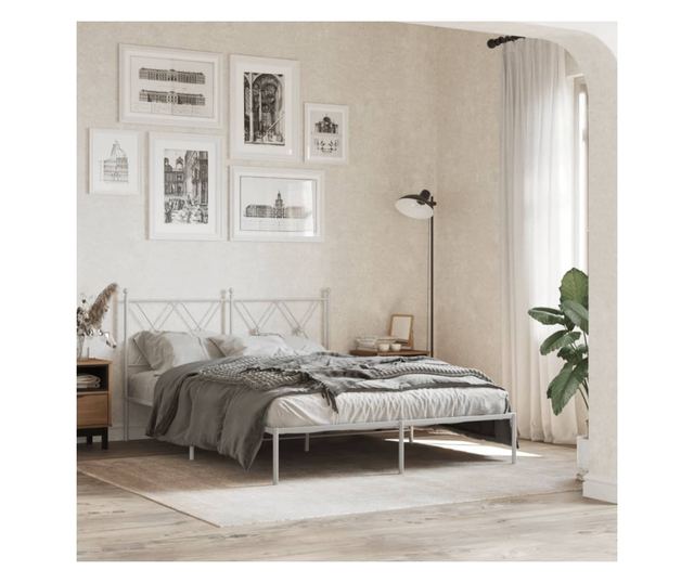fehér fém ágykeret fejtámlával 140 x 190 cm