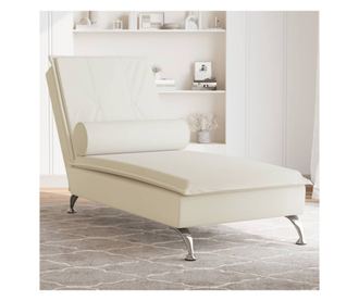 krémszínű bársony masszírozó dívány hengerpárnával