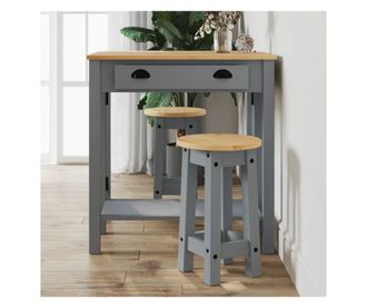 3 részes szürke tömör fenyőfa bárszett