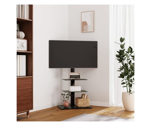 3-szintes fekete sarok TV-állvány 32-65 hüvelyk