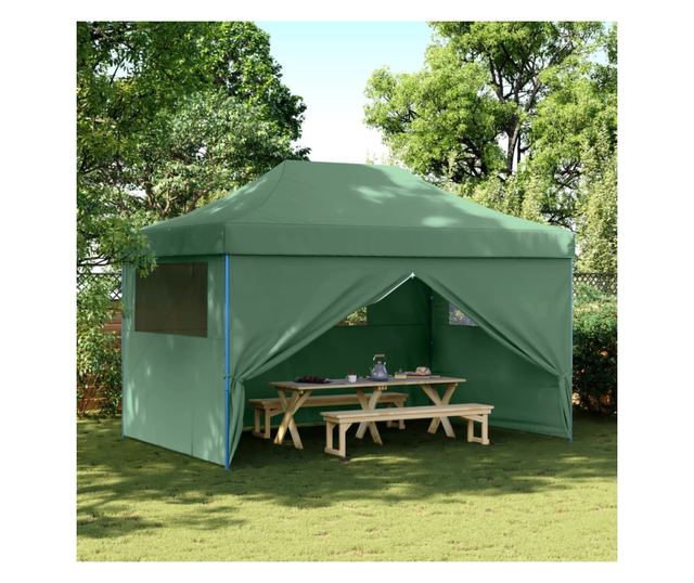 zöld összecsukható felugró rendezvénysátor 4 oldalfallal