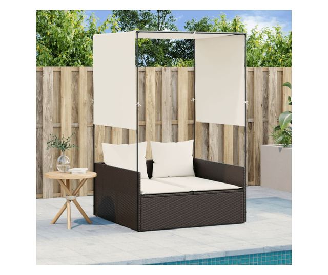 barna polyrattan dupla napozóágy tetővel és függönyökkel