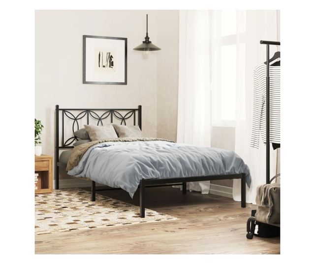 fekete fém ágykeret fejtámlával 107 x 203 cm