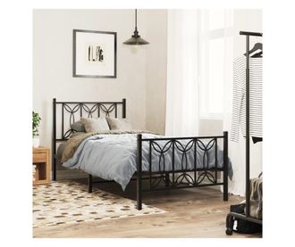 fekete fém ágykeret fej- és lábtámlával 90 x 200 cm