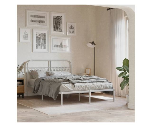 fehér fém ágykeret fejtámlával 135 x 190 cm