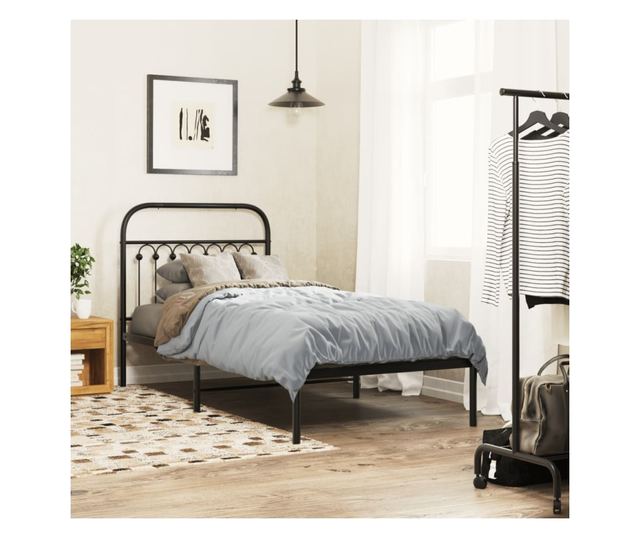 fekete fém ágykeret fejtámlával 90 x 200 cm