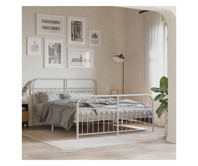 fehér fém ágykeret fej- és lábtámlával 150x200 cm