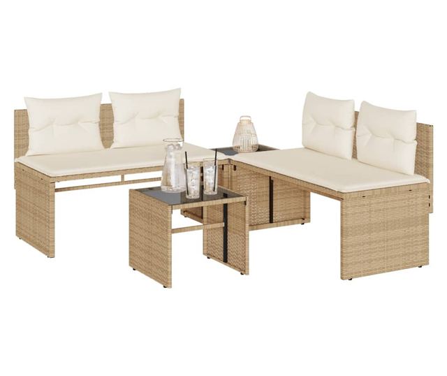 4 részes bézs polyrattan kerti ülőgarnitúra párnákkal