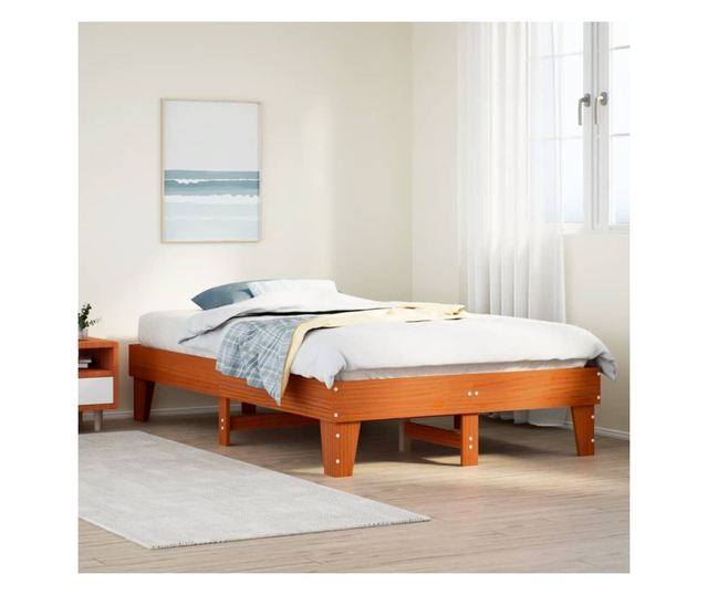viaszbarna tömör fenyőfa ágy matrac nélkül 135 x 190 cm