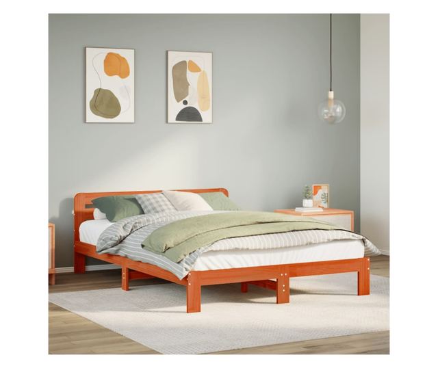 viaszbarna tömör fenyőfa ágy matrac nélkül 140 x 190 cm