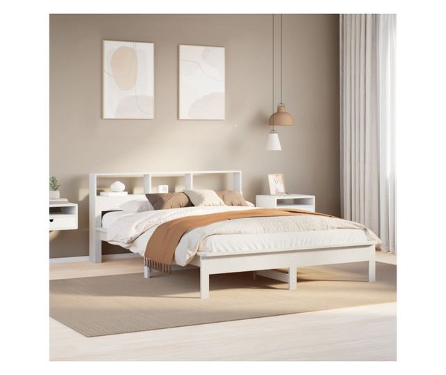 fehér tömör fenyőfa könyvespolcos ágy matrac nélkül 120x190 cm