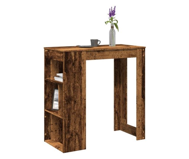 antik fa színű szerelt fa bárasztal tárolókkal 102x50x103,5 cm
